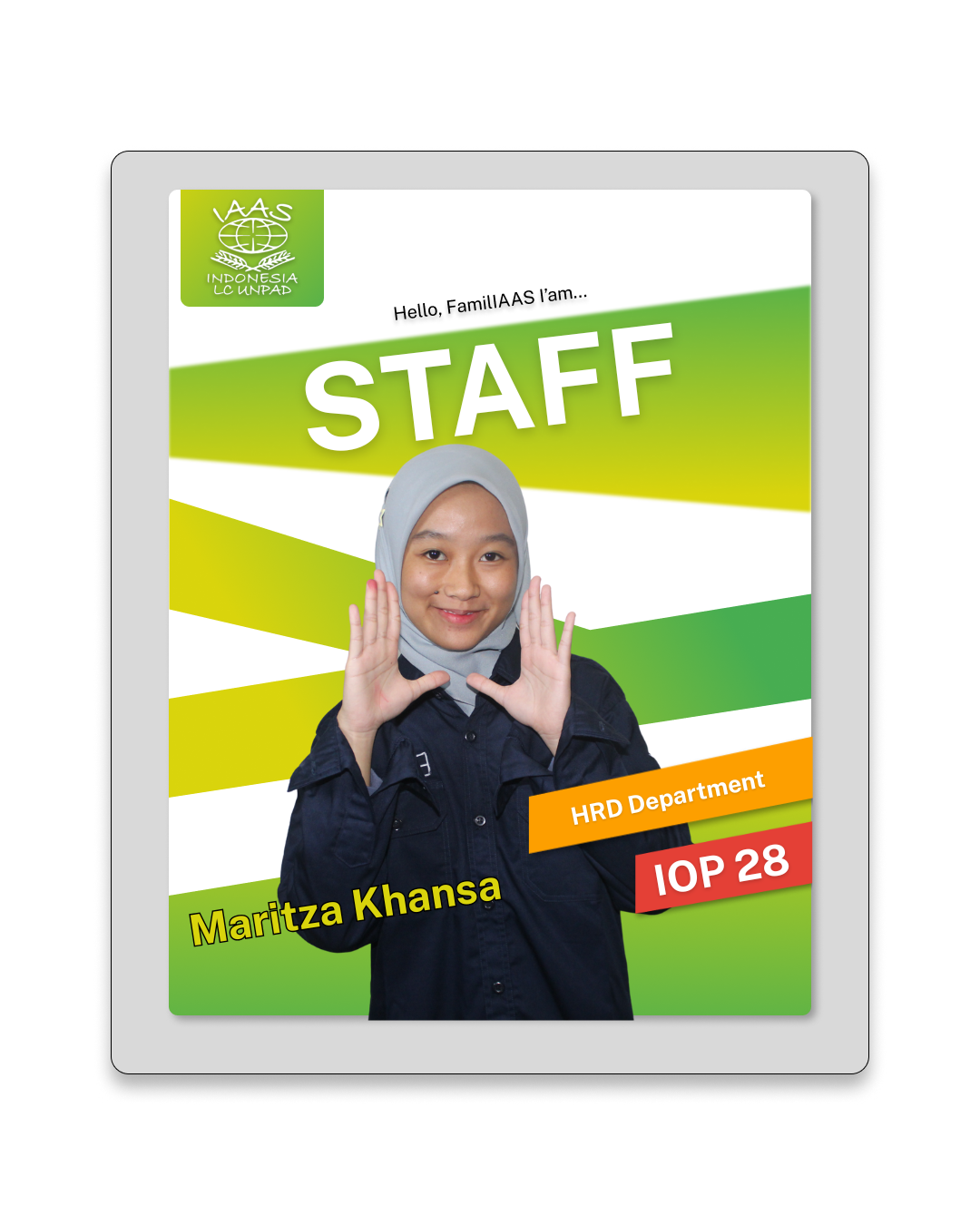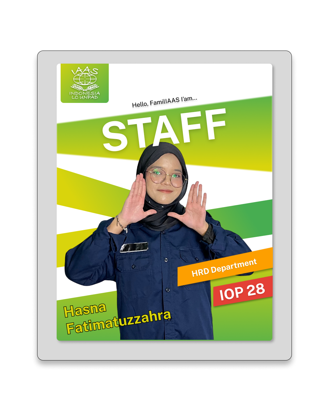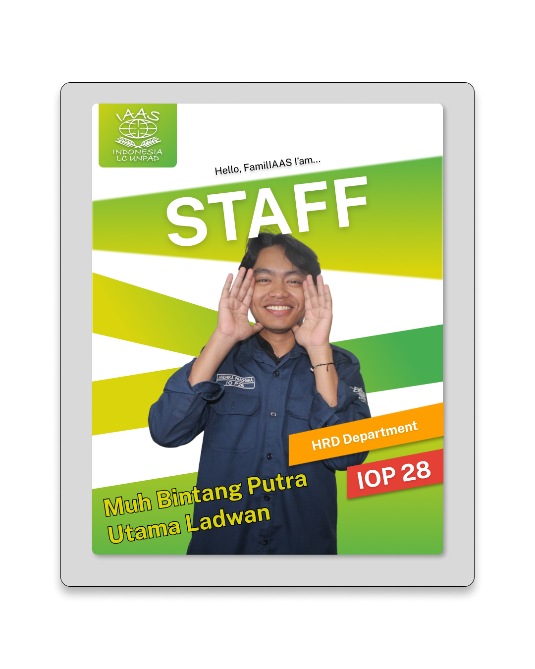 The Human Resources and Development Department is one of five departments within the IAAS LC Unpad organization. This department is responsible for developing skills, recognizing achievements, monitoring and evaluating performance, fostering a sense of belonging and camaraderie among all IAAS LC Unpad members, and conducting open recruitment for new IAAS LC Unpad members. The work programs implemented by the Human Resources and Development Department of IAAS LC Unpad consist of six activities: IAAS Birthday Card and Congratulations, IAAS Faway, IAAS Anniversary X Skill Development, IAAS Gathering, IAAS Looking for New Members, and Peer Assessment.