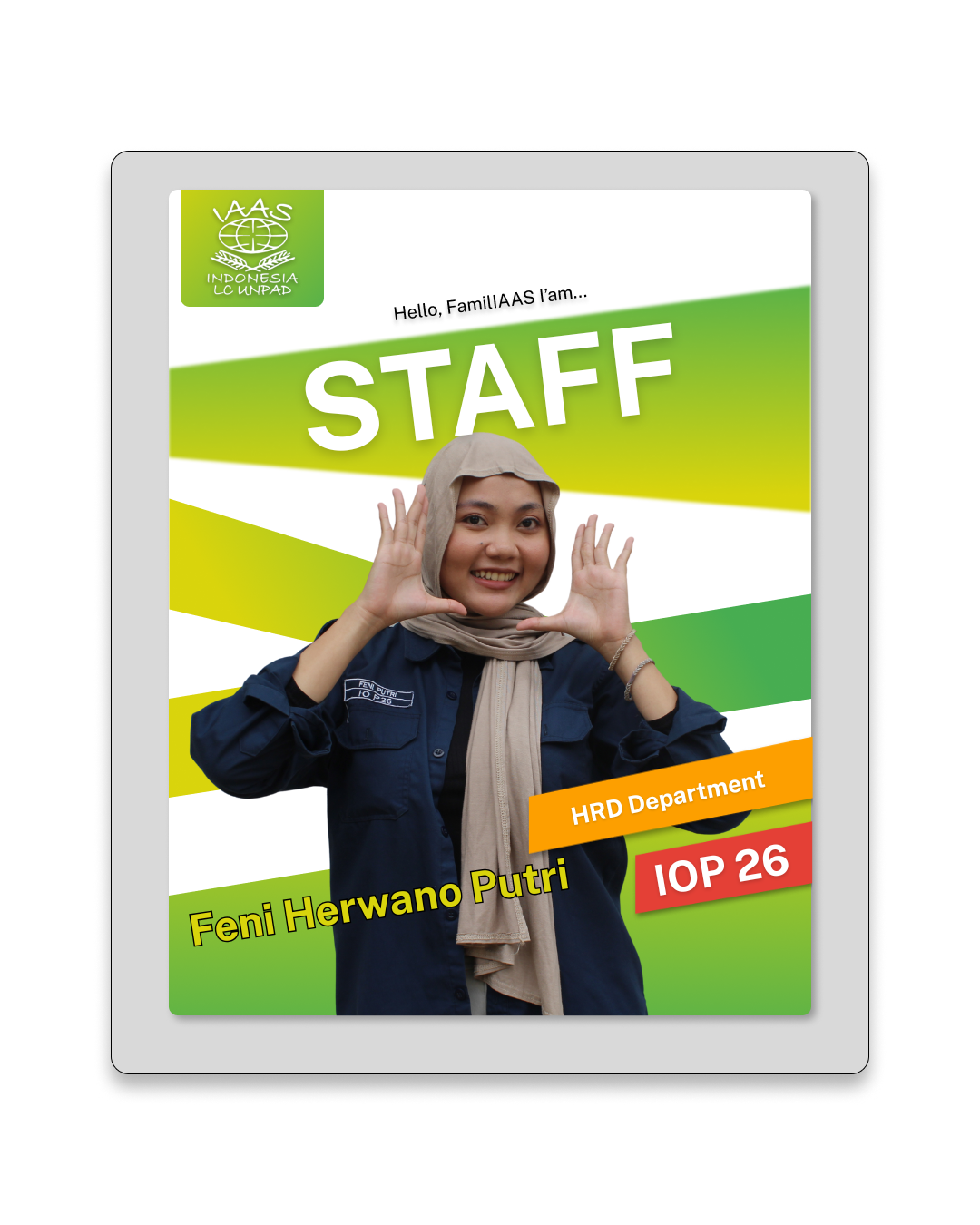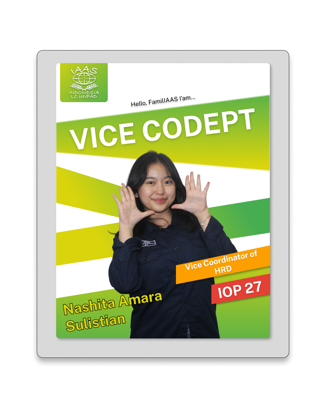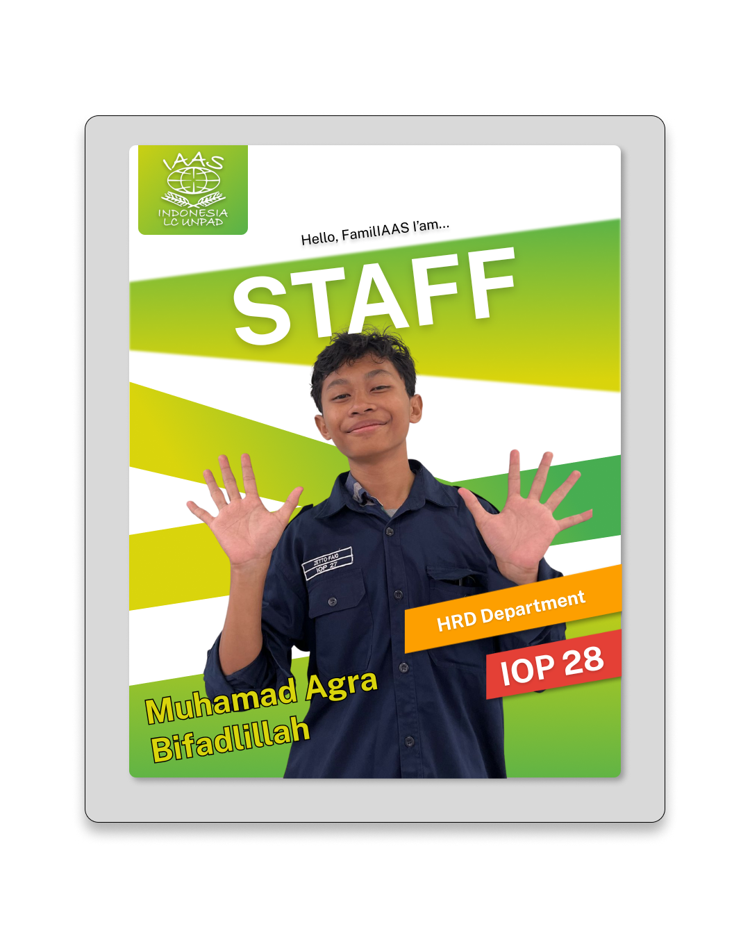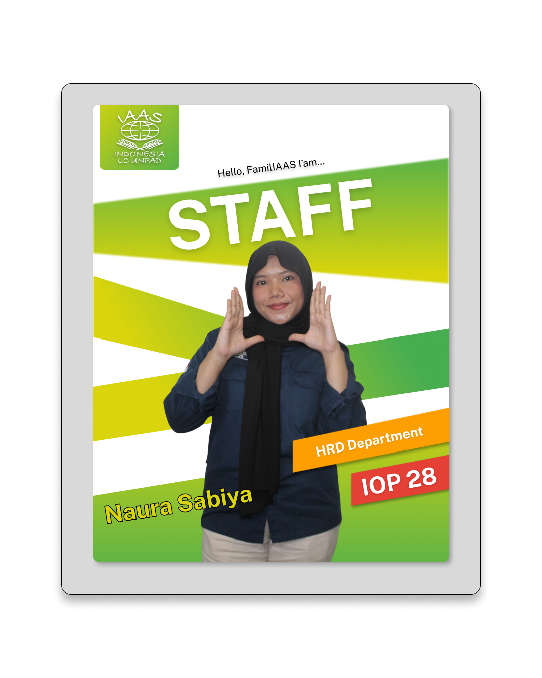 The Human Resources and Development Department is one of five departments within the IAAS LC Unpad organization. This department is responsible for developing skills, recognizing achievements, monitoring and evaluating performance, fostering a sense of belonging and camaraderie among all IAAS LC Unpad members, and conducting open recruitment for new IAAS LC Unpad members. The work programs implemented by the Human Resources and Development Department of IAAS LC Unpad consist of six activities: IAAS Birthday Card and Congratulations, IAAS Faway, IAAS Anniversary X Skill Development, IAAS Gathering, IAAS Looking for New Members, and Peer Assessment.